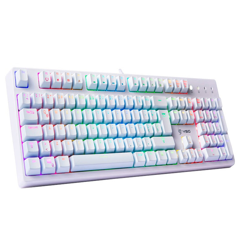 El Teclado Mecanico VSG Alnilam VG-KM983 es un teclado de formato completo que cuenta con una estructura de 105 teclas y dimensiones de 140 x 440 x 38 mm. Perfecto para juegos y trabajo, este teclado ofrece todas las características necesarias para una experiencia óptima.